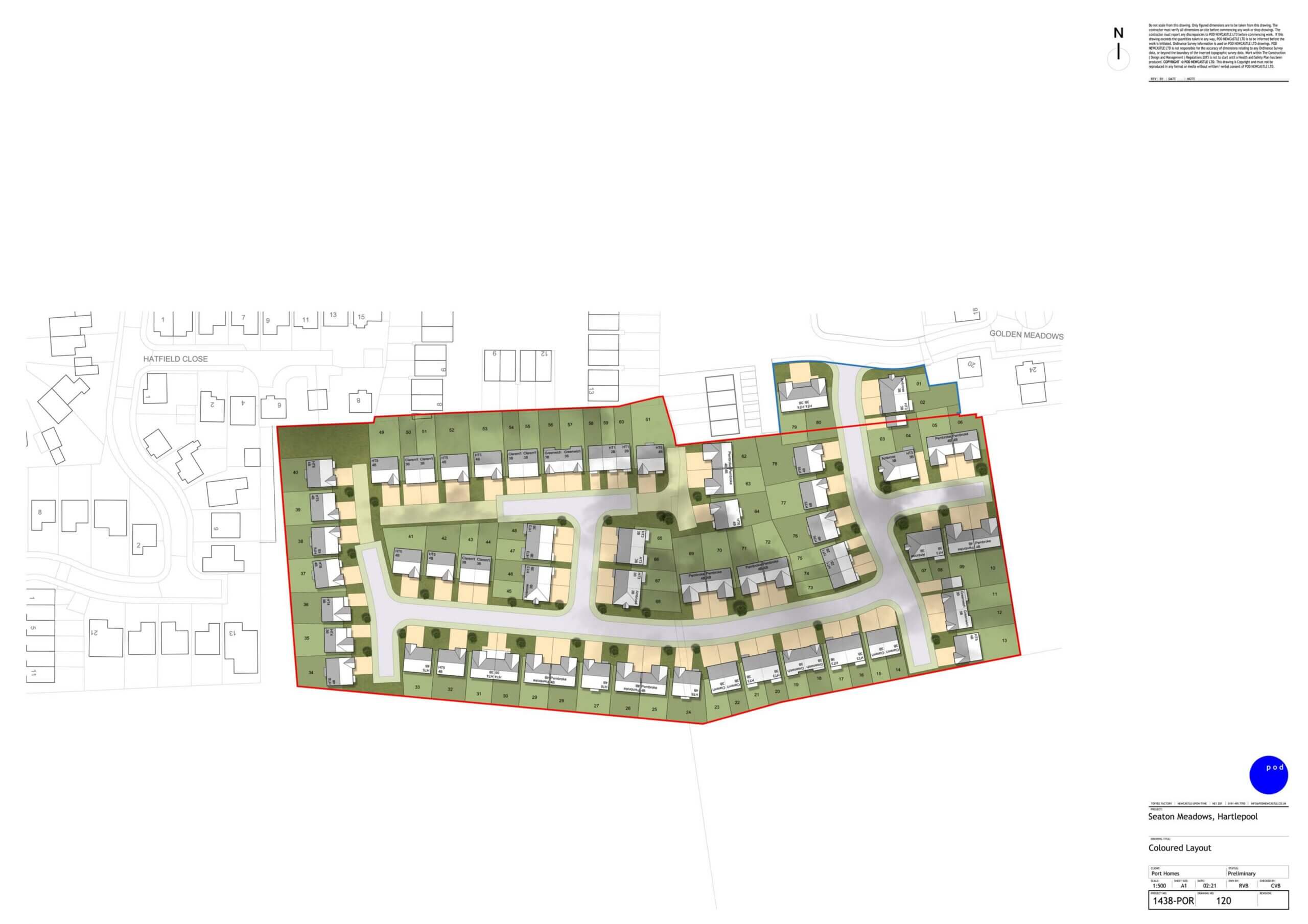 Port Homes have purchased land from Hartlepool Borough Council to further extend their existing residential development at Seaton Meadows. An access road is proposed through the existing development to the land.