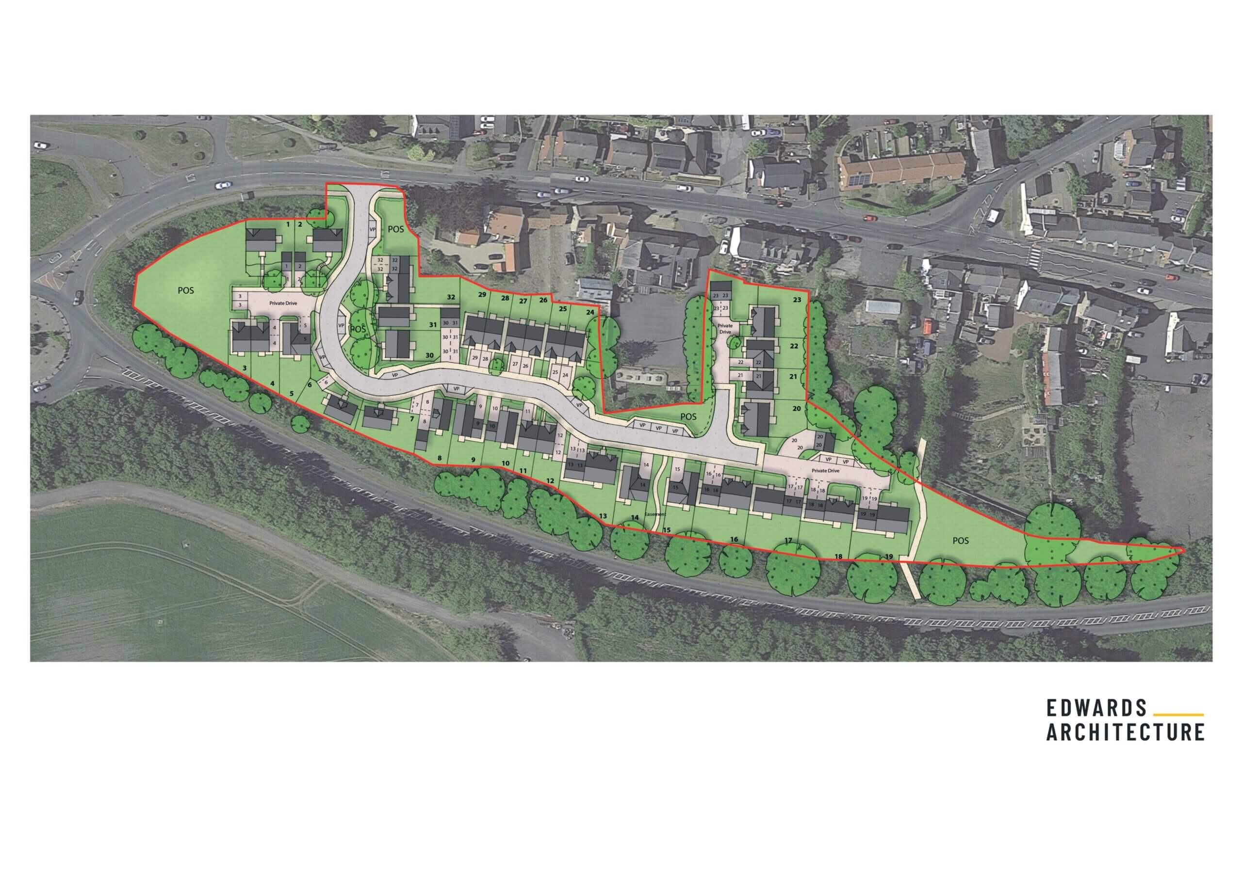 The proposed development has been arranged around a cul-de-sac layout to allow for safe access and manoeuvrability for vehicles and to encourage a sense of place and community for residents.