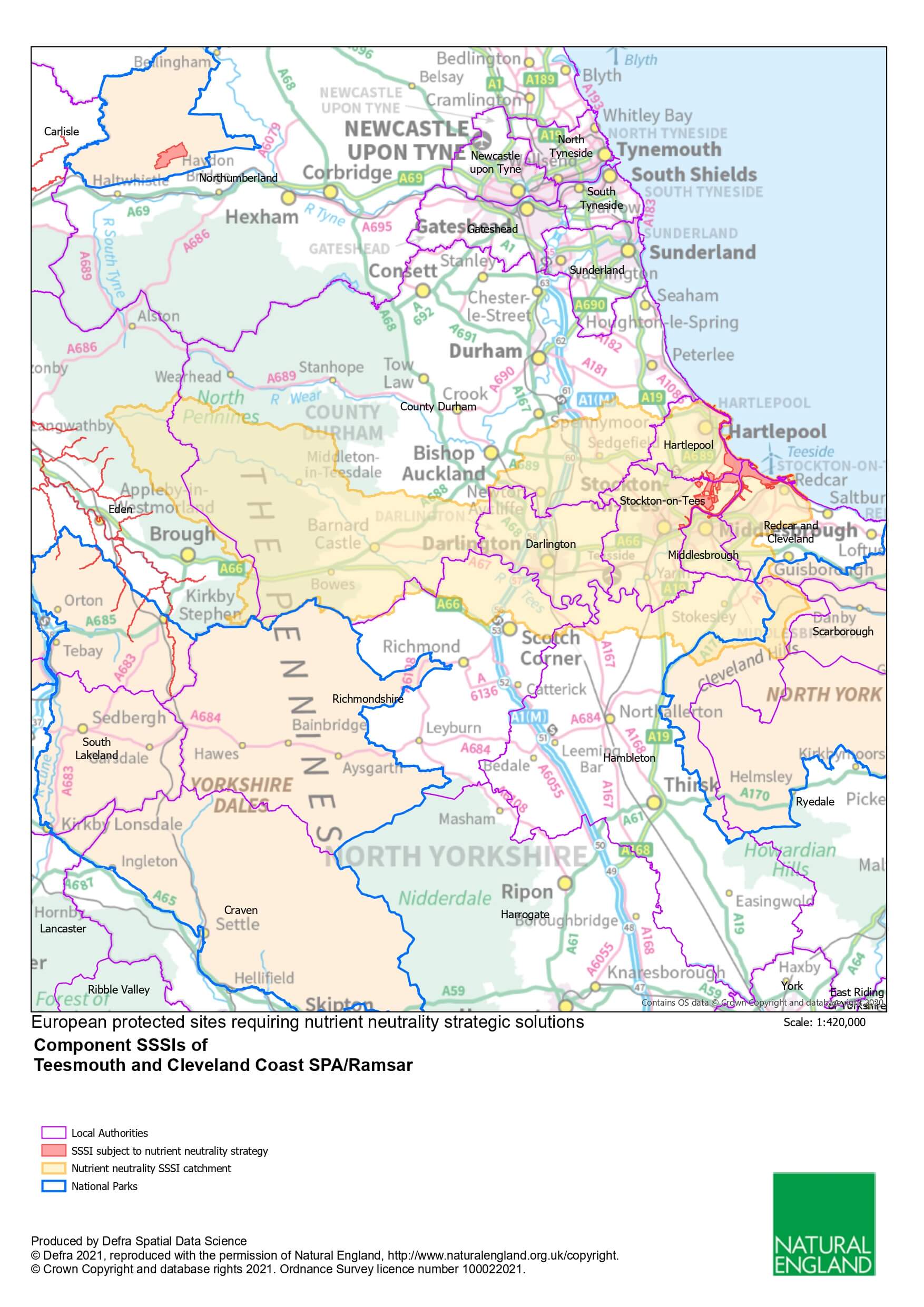 Natural England have suggested that, in many cases, this issue can be tackled through an approach based on the concept of Nutrient Neutrality. They have provided a Nutrient Neutrality Budget Calculator (NNBC) tool for the Tees catchment, with Guidance Notes, which allows a nutrient budget to be established for any development.