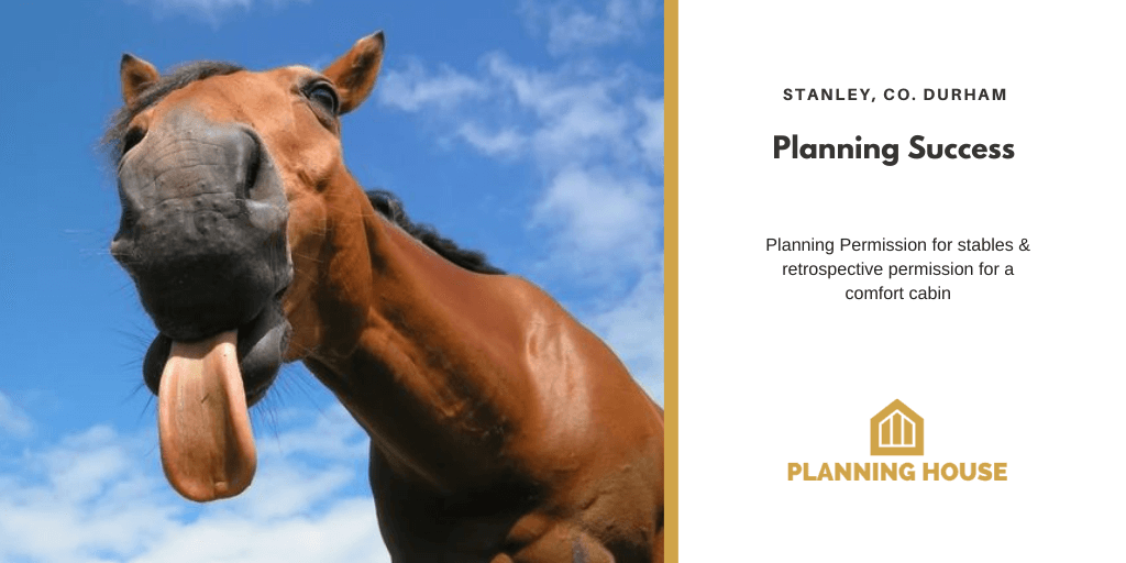 We are delighted to have secured planning permission for stables and a cabin to house rescue horses currently grazing on land at our client’s site in Stanley, Co. Durham.